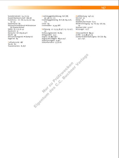 147 Sozialdemokratie 114, 117, 123 Soziale Marktwirtschaft 116, 128 Sozialismus 116 118, 123, 125, 127 129, 131 133 Staatenbund 89 Staatssicherheitsdienst j Ministerium für Staatssicherheit Städte 8, 10, 12, 36 42 Stadtrecht 37 Stamp Act 80 f., 85, 87, 91 f. Staufer 43 Stempelsteuergesetz j Stamp Act Sugar Act 84 Tarifautonomie 118 Tea Act 80 Townshend Acts 81, 85 f. Unabhängigkeitserklärung 80 f., 88, 96 98, 103 107 Unabhängigkeitskrieg 80 f., 87 89, 102 f., 106 Union 69 Universitäten 25, 44, 68 f. Verfassung 20 23, 35, 38, 47 f., 115 117, 125 f., 131 Verfassungskonvent 80, 89 Verlagswesen 27, 31 Virginia 80, 82 f., 89 f. Virginia Bill of Rights 88, 90, 95 f. Volksfrömmigkeit 9, 49 f. Volksreformation 9, 56, 66 Wahlfälschung 114 f., 123 Wechsel 26 Welser 26 Westfälischer Frieden 8, 70 Wiedervereinigung 114 116, 124 126, 129, 141 Wormser Edikt 57, 60 f. Wüstungen 12, 17 Zensuswahlrecht 83, 90 Zünfte 17, 27, 38, 41 f., 79 Zweiter Kontinentalkongress 80 f., 87 89, 95 f., 104 f. 7316_1_1_2015_138-152_Krisen_Revolutionen.indd 147 05.05.15 13:04 Nu r z u Pr üf zw ec ke n Ei ge nt um d es C .C . B uc hn er V er la gs | |